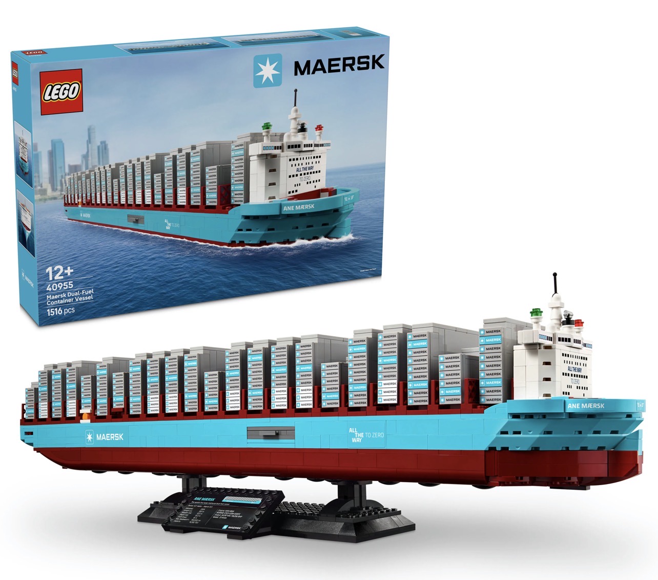 - 首創船舶-此盒組鼓勵拼砌者動手打造 ANE MÆRSK 貨櫃船積木複製模型,以適合擺在家中的尺寸生動重現史上首款低碳排放的雙燃料船舶